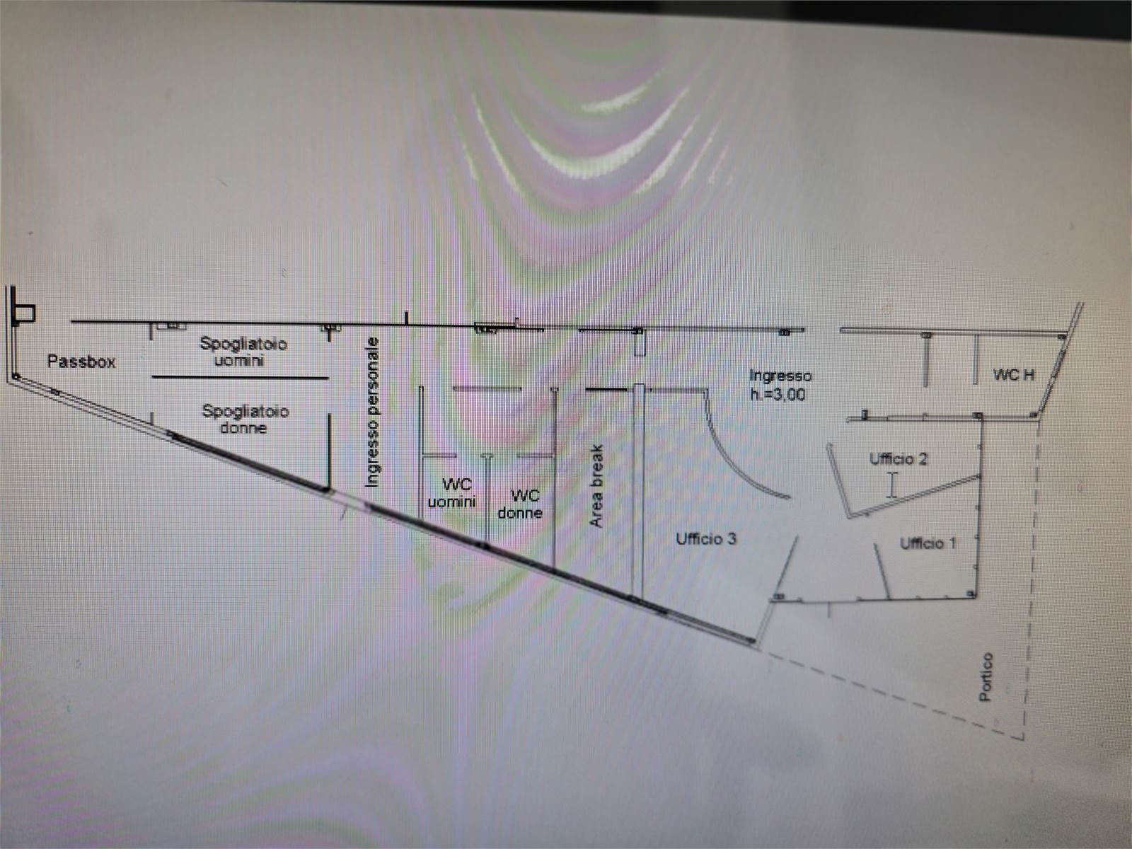 lo stabile è costituito da zona uffici con sala d'attesa e servizi, ingresso dipendenti separato con spogliatoi servizi igienici, docce e sala mensa.